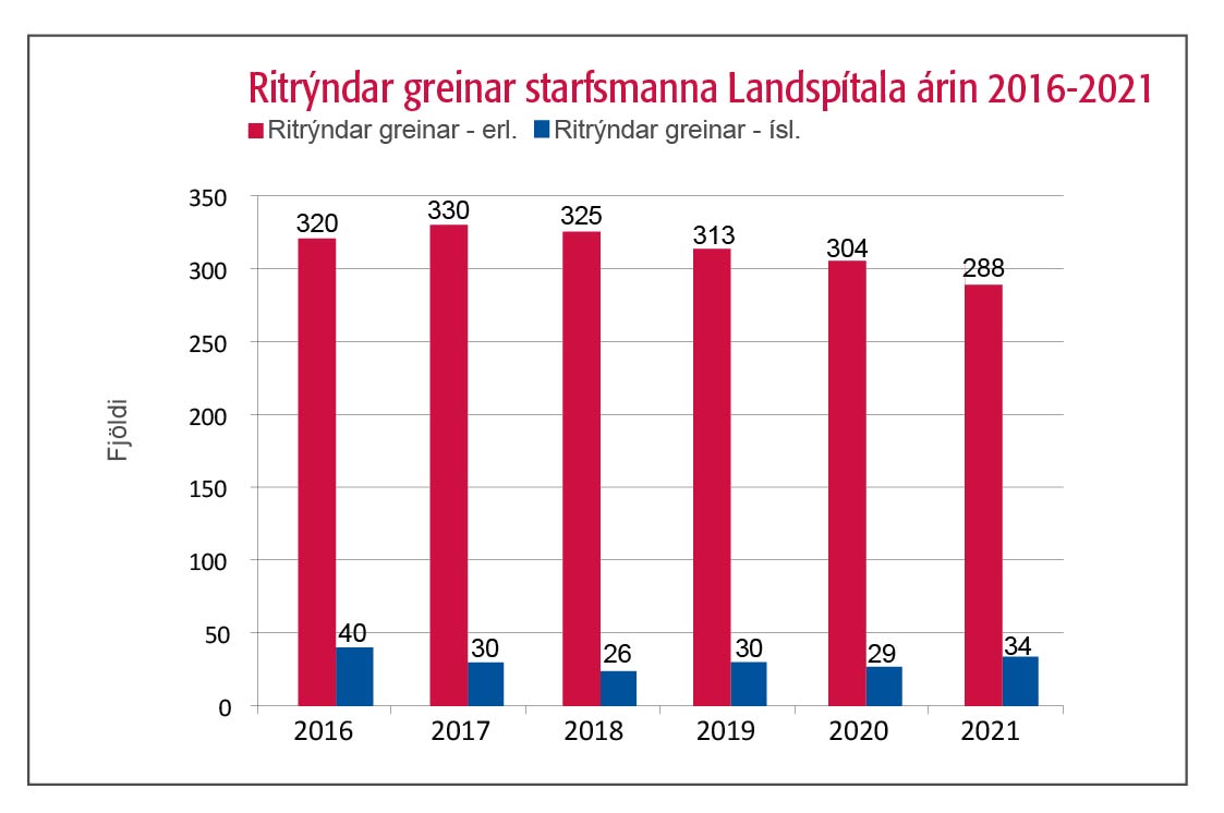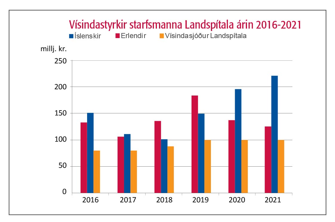 Ýmislegt hefur þó gengið okkur í haginn. Á árinu 2019 var tekin ákvörðun um að stofna sérstakan birtingasjóð fyrir andvirði hlutabréfa sem spítalinn seldi í sprotafyrirtækinu Oculis en fyrirtækið stofnuðu Einar Stefánsson, yfirlæknir og prófessor, og Þorsteinn Loftsson, prófessor í lyfjafræði. „Birtingasjóður Landspítala“ tók til starfa á árinu 2021 og voru þá fyrstu greiðslur úr honum til rannsakenda. Markmiðið er að styðja við rannsakendur á spítalanum sem birta vísindagreinar sem fyrsti eða síðasti höfundur í viðurkenndum vísindaritum. Vonir standa til að sjóðurinn verði efldur og fái mótframlag frá spítalanum þegar fram líða stundir. Einnig er ánægjulegt að á árinu 2021 var hafist handa við innleiðingu sérhæfðs upplýsingakerfis á landsvísu, sem er mikilvægt tæki til að halda utan um allar þær upplýsingar sem myndast í kringum rannsóknir. Kerfið hefur fengið heitið ÍRIS og er stýrt frá Landsbókasafni – Háskólabókasafni en Landspítali á aðild að því ásamt háskólum landsins. Vonir standa til að með innleiðslu kerfisins verði mun auðveldara að fylgjast með og greina upplýsingar sem snúa að rannsóknum og nýsköpun á spítalanum.