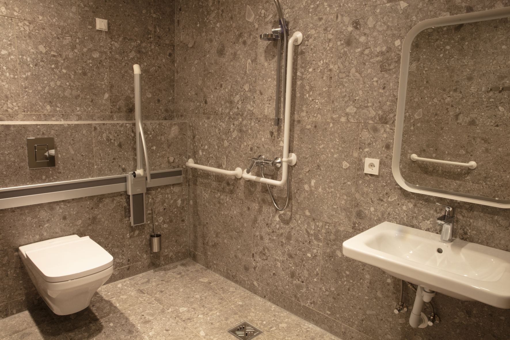 Rúmgott salerni með sturtu og sturtustól er í öllum herbergjum. Hjúkrunarfræðingar úthluta sérútbúnum herbergjum með hjólastólaaðgengi, rafmagnsrúmi eða sérhæfðum búnaði í samræmi við þarfir sjúklinga hverju sinni.