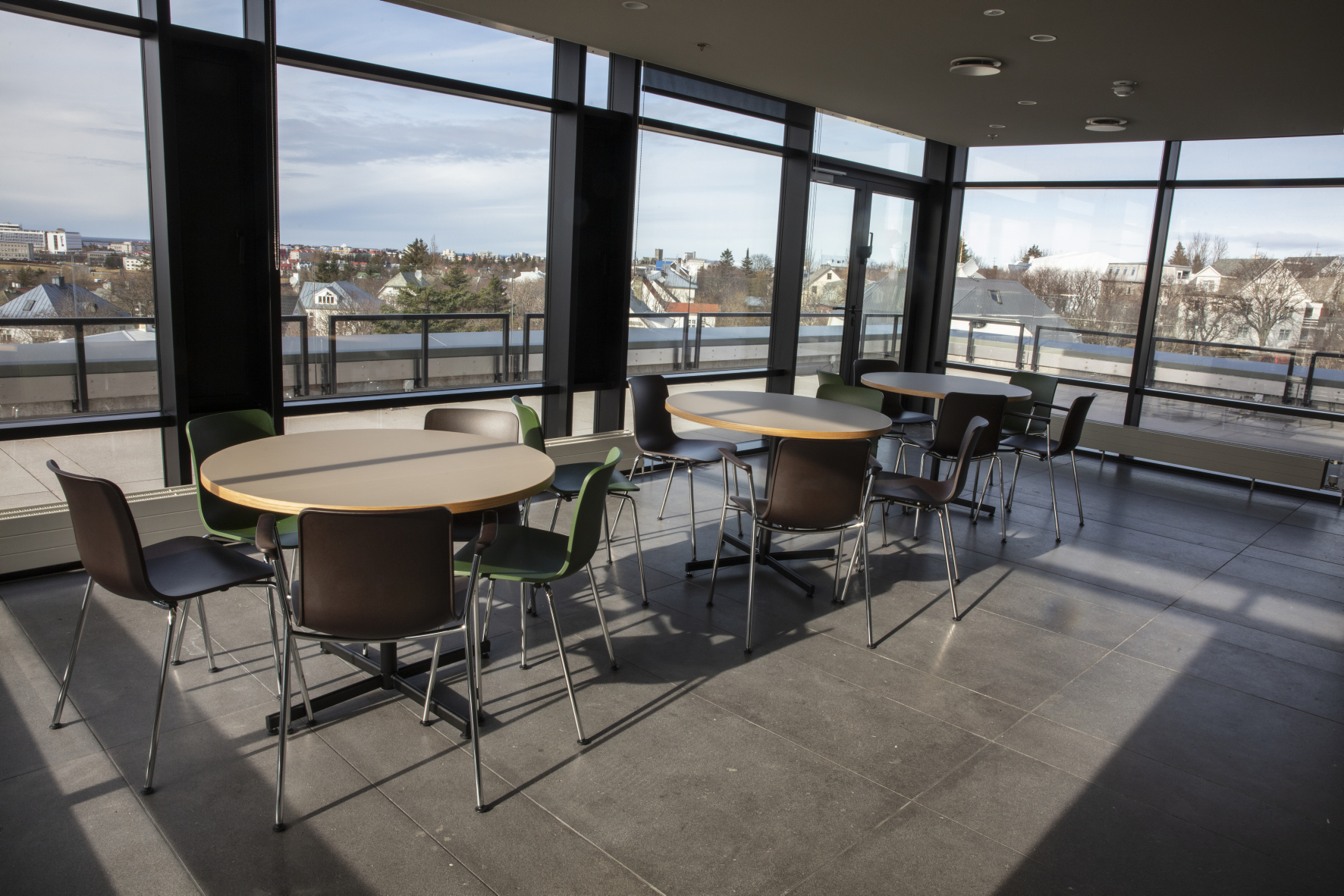 Í veitingasal á jarðhæð er borinn fram morgunmatur, hádegismatur og heitur matur á kvöldin.