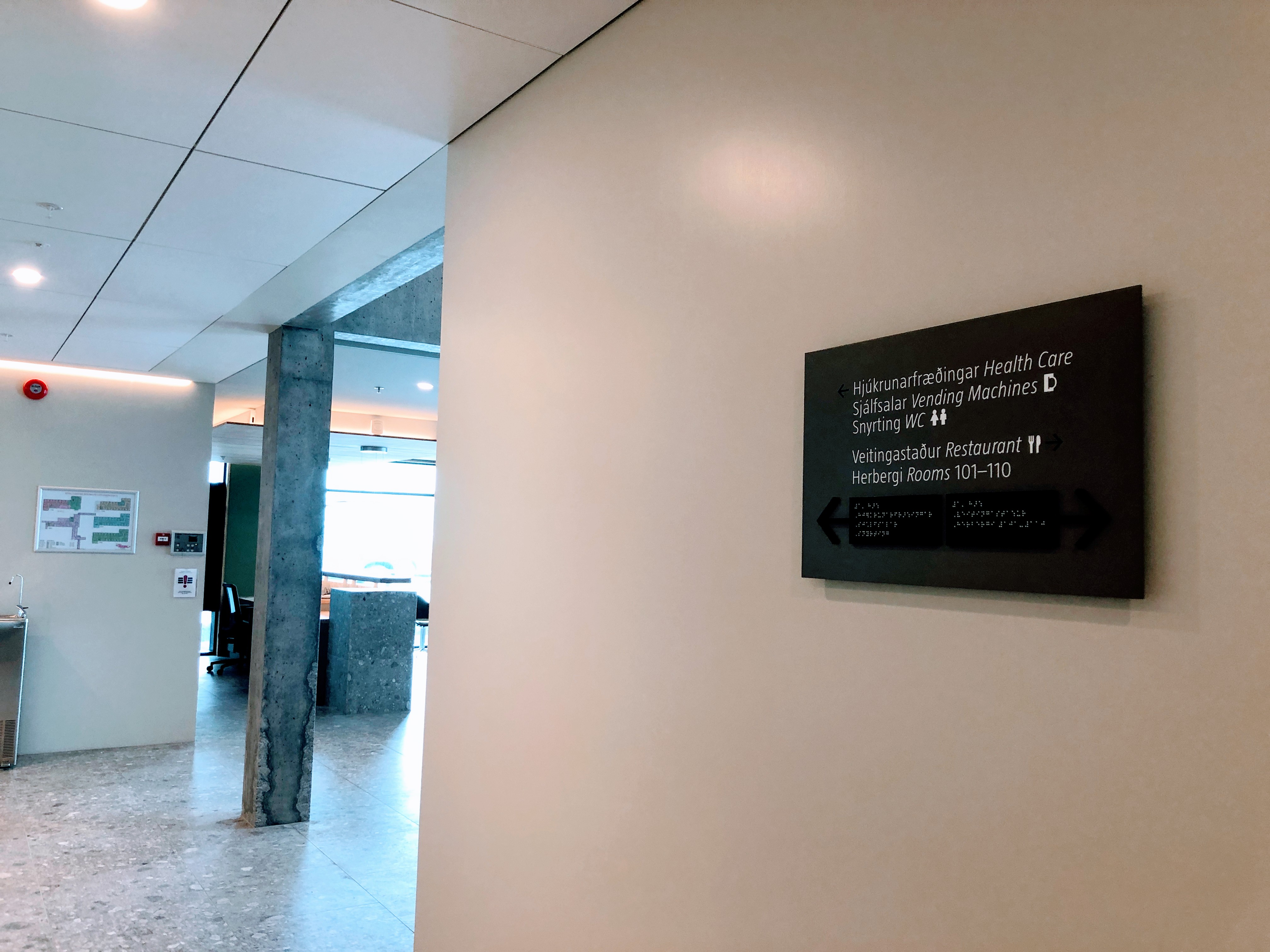 Gengið er inn um aðalinngang hótelsins gegnt inngangi kvennadeildar.
