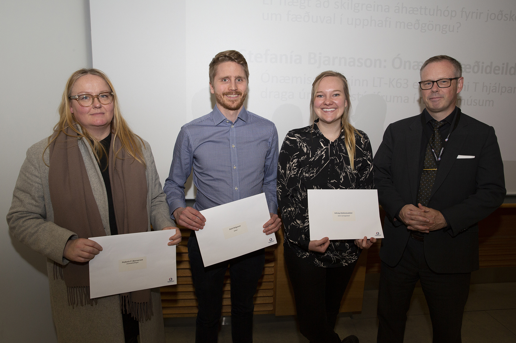 Þrír vísindamenn fengu ferðastyrki vísindaráðs Landspítala fyrir veggspjöld sín á Vísindum á vordögum 2019; Daði Helgason, Stefanía Bjarnason og Sólveig Anna Aðalsteinsdóttir. Hvert þeirra fékk 100 þúsund krónur.