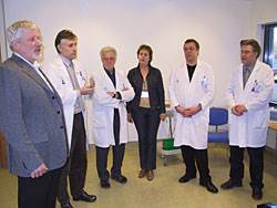 Auk Gunnlaugs og og Önnu Ólafíu tóku við gjöfinni af hálfu Banaspítalans prófessor Ásgeir Haraldsson yfirlæknir og forstöðumaður fræðasviðs, Atli Dagbjartsson yfirlæknir vökudeildar og Magnús Ólafsson sviðsstjóri hjúkrunar.