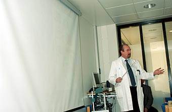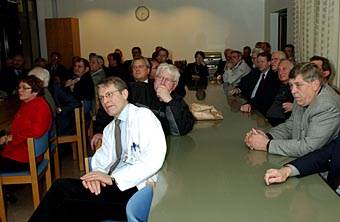 Gizur Gottskálksson hjartasérfræðingur skýrir fyrir gestunum hvernig rafleiðnigreinir virkar og hvers má vænta af notkun hans.