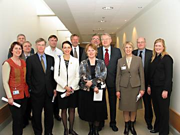 Magnús Pétursson forstjóri LSH og framkvæmdastjórn spítalans tóku á móti ráðherranum ásamt sviðsstjórunum Ásgeiri Haraldssyni og Önnu Ólafíu Sigurðardóttur.