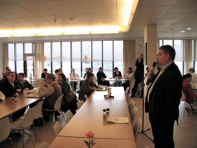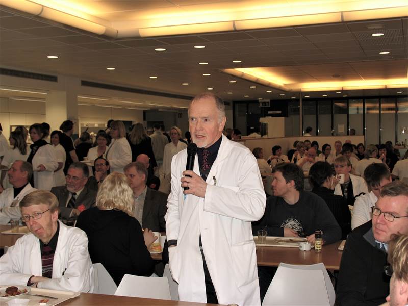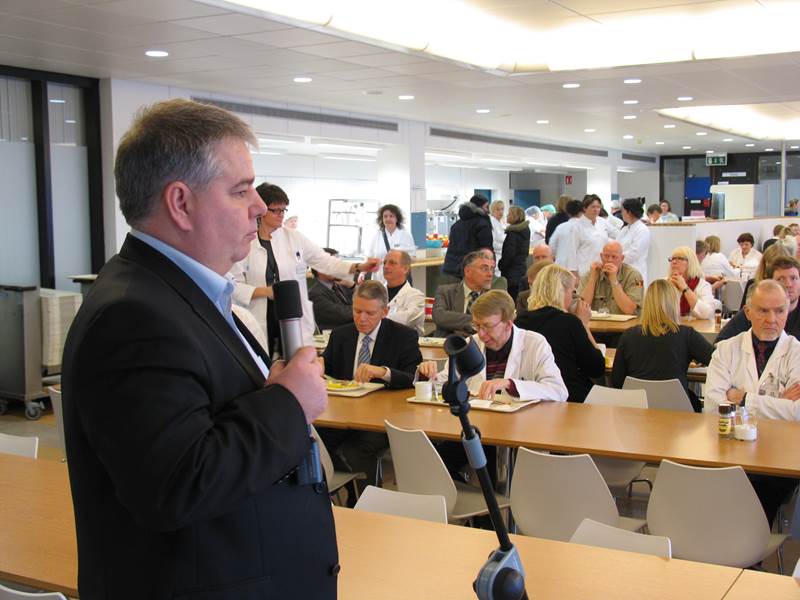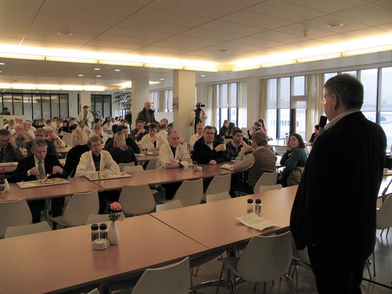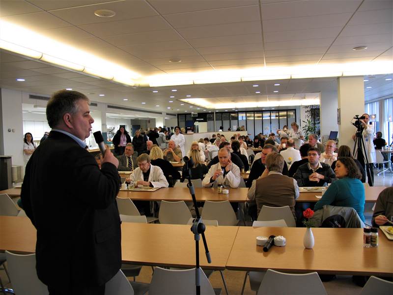 Gunnar Svavarsson, formaður verkefnisstjórnar um nýjan Landspítala, gerir grein fyrir stöðu verkefnisins og svarar fyrirspurnum starfsmanna LSH, ásamt öðrum í verkefnisstjórninni.