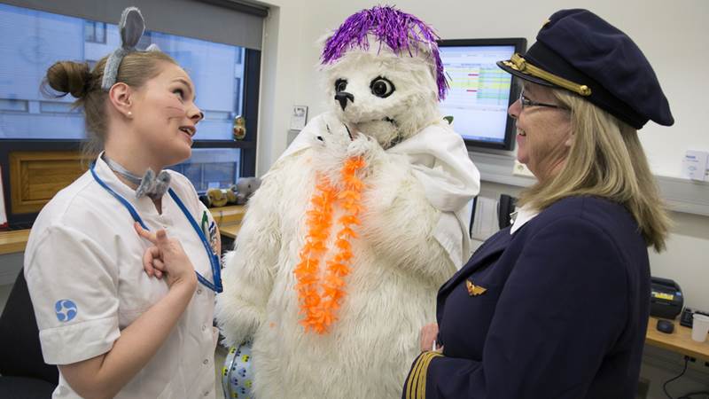 Hringur ísbjörn fór mikinn þegar hann leit inn til barnanna á Barnaspítala Hringsins á öskudeginum 17. febrúar 2015. Þessi góðviljaði ísbjörn á það til að koma og stytta börnunum á barnaspítalanum stundirnar og er alltaf vel fagnað. Núna var Hringur svolítið „skreyttur“ í tilefni öskudagsins en hann var nú ekki einn um það. Ýmsir höfðu farið í dulargervi í tilefni dagsins.