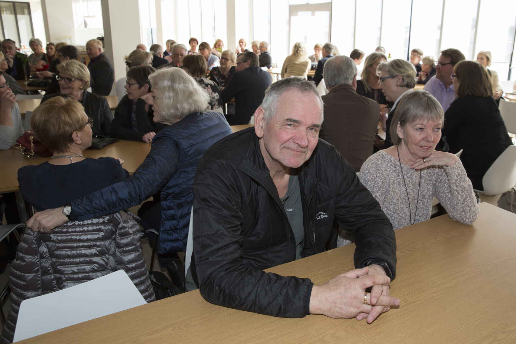 Um 100 manns mættu í matsalinn á Landspítala Hringbraut, bæði fólk sem nú er hætt störfum og samstarfsfólk þess.