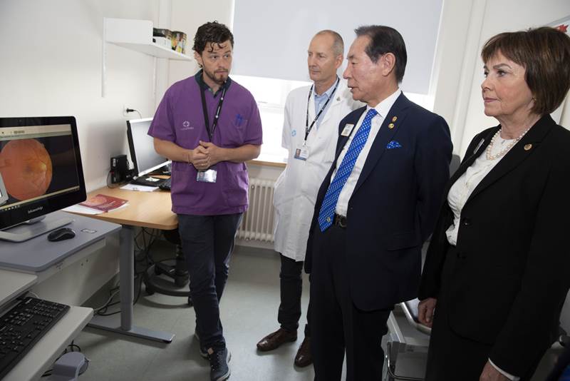 Dr. Jung-Yul Choi frá Suður Kóreu, alþjóðaforseti Lionshreyfingarinnar, heimsótti innkirtladeild Landspítala 21. ágúst 2019. Með í för var Guðrún Björt Yngvadóttir, fráfarandi alþjóðaforseti, og var þeim kynnt starfsemi deildarinnar ásamt notagildi gjafar Lionshreyfingarinnar á Íslandi frá í vor. Um er að ræða afrakstur landssöfnunarinnar „Rauða fjöðrin“ en það er tæknilega fullkomin augnbotnamyndavél sem nýtist til skimunar hjá einstaklingum með sykursýki.