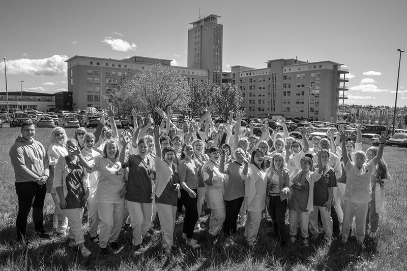 Myndin hér fyrir ofan af starfsfólkinu var tekin sumarið 2020 í tilefni af því að gjörgæslan í Fossvogi var heiðruð á ársfundi Landspítala 2020.
