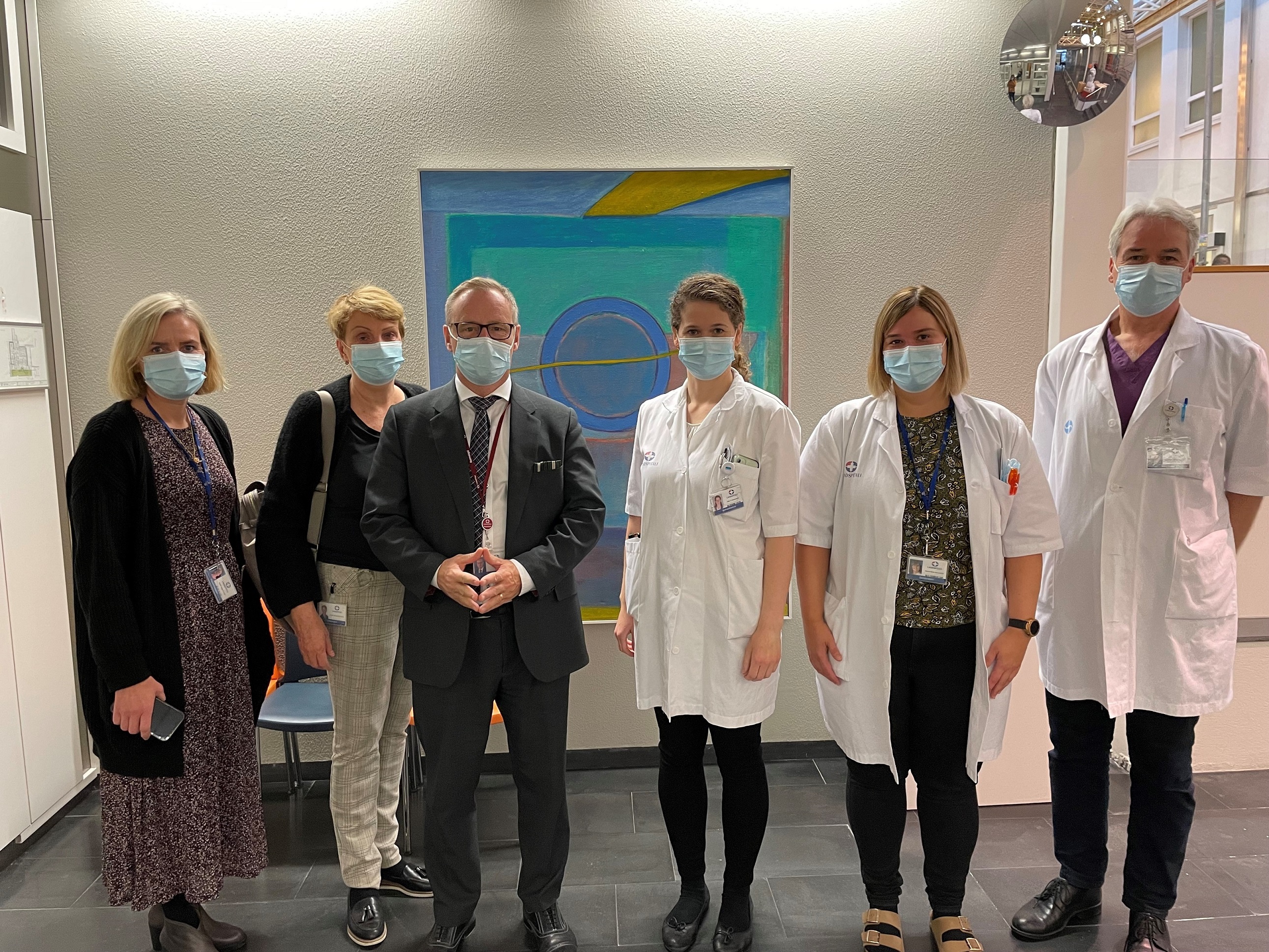 Vigdís Hallgrímsdóttir forstöðumaður krabbameinsþjónustu, Guðrún Björg Sigurbjörnsdóttir, Páll Matthíasson, Vaka Ýr Sævarsdóttir krabbameinslæknir, Hanna Björg Henrysdóttir deildarstjóri, Jakob Jóhannsson yfirlæknir..