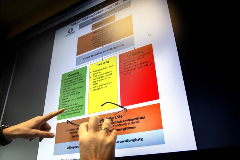 Á æfingunni núna æfði viðbragðsstjórn Landspítala viðbrögð við hópslysi sem felast meðal annars í því að finna út hversu langan tíma tekur að koma spítalanum í það skipulag sem gengið er út frá þegar hann er settur á neyðarstig.