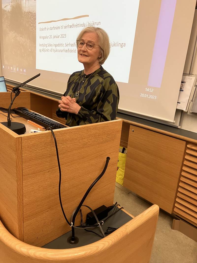 Hátíðarathöfn vegna útskriftar úr starfsnámi til sérfræðingsréttinda í hjúkrun og ljósmóðurfræðum á Landspítala var 20. janúar 2023.