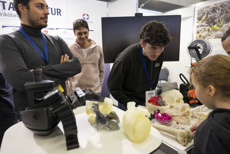 Myndir af líflegum Landspítalabásum á Vísindavöku Rannís 2022.
