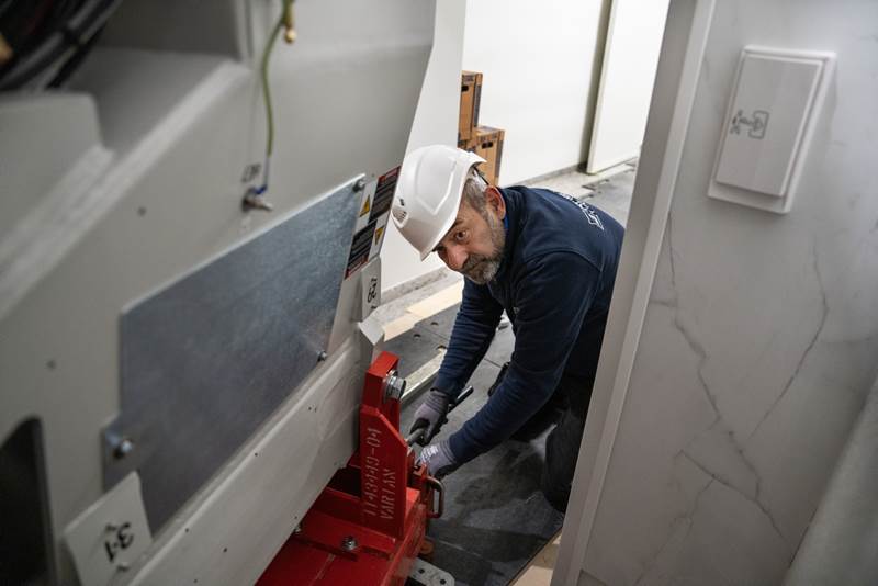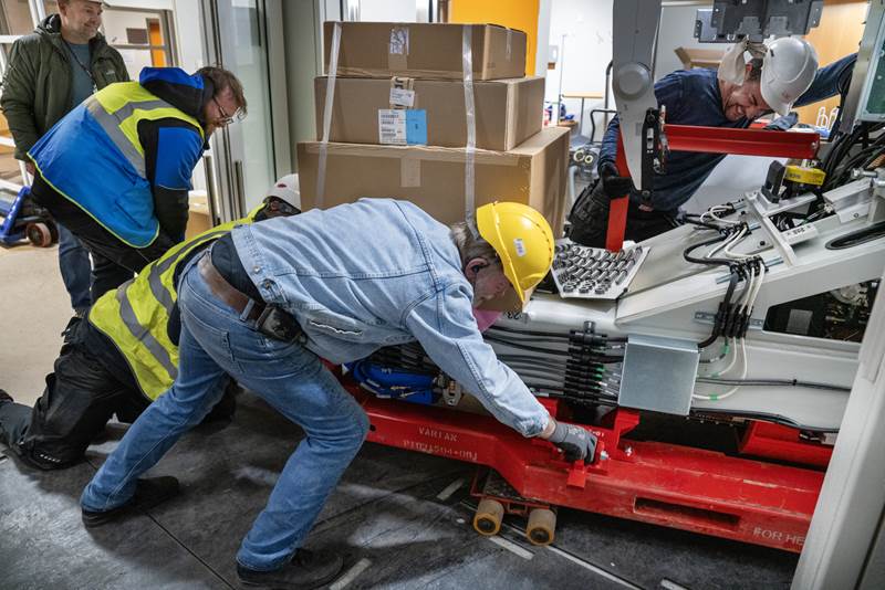 Nú er tækið komið í hús, sem er stór áfangi í umfangsmiklu verkefni. Að skipta út tæki sem þessu krefst gríðarlegs undirbúnings frá starfsfólki deildarinnar, hönnunar- og framkvæmdadeild ásamt starfsfólki heilbrigðistækni. Næst fer fram vinna við að setja tækið saman og fínstilla. Sú vinna er umfangsmikil og inniheldur m.a. nákvæmar geislaferilmælingar og útreikninga sem framkvæmdar eru af eðlisfræðingum deildarinnar. Áætlað er að tækið verði tekið í notkun í nóvember.