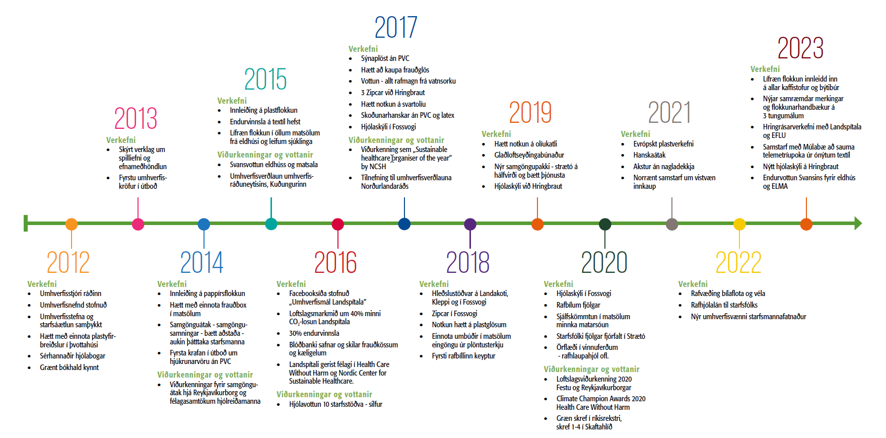 - Umhverfisstefna Landspítala er leiðarvísir að þessari framtíðarsýn. Ýmis skref hafa verið stigin í átt að umhverfisvænni Landspítala síðan stefnan var sett 2012 og fjölgar þeim jafnt og þétt.